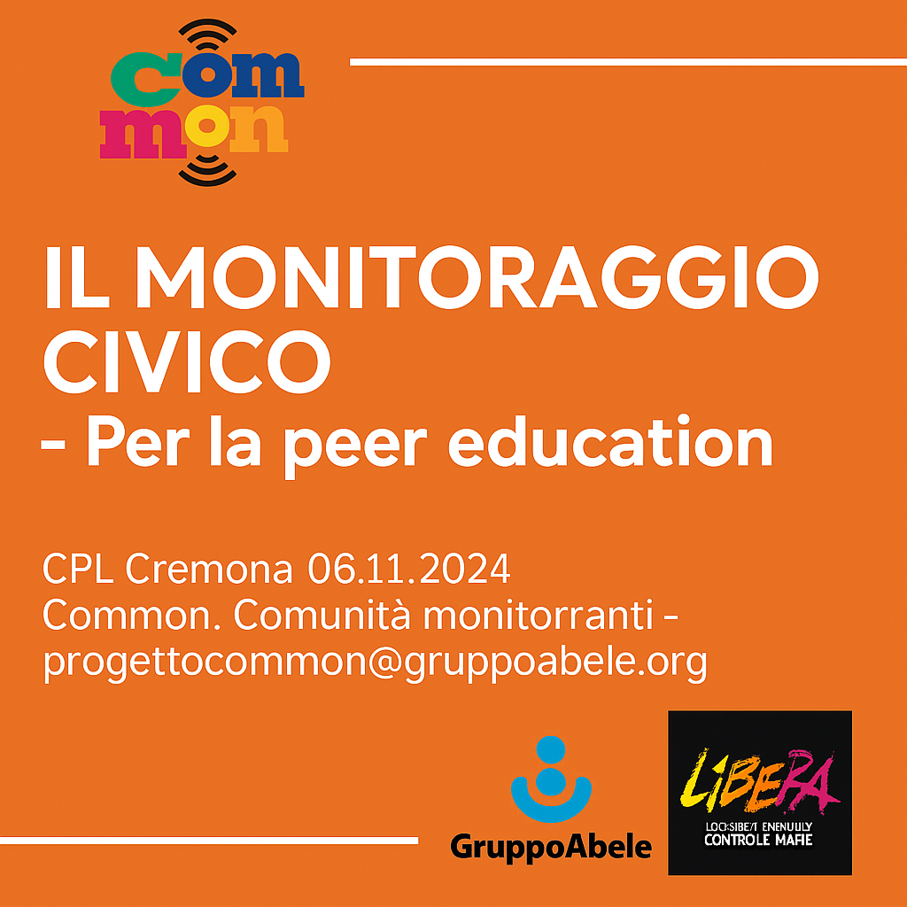Il progetto “Il monitoraggio civico – per la peer education”, promosso dal CPL di Cremona nell’ambito dell’iniziativa “Common. Comunità monitoranti”, ha come obiettivo principale quello di diffondere la cultura del monitoraggio civico tra gli studenti e le studentesse delle scuole.
