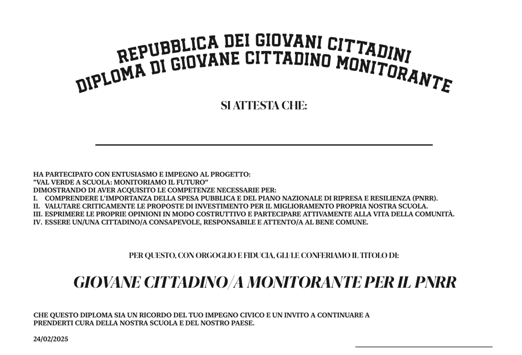 Il traguardo: diploma di cittadini monitoranti